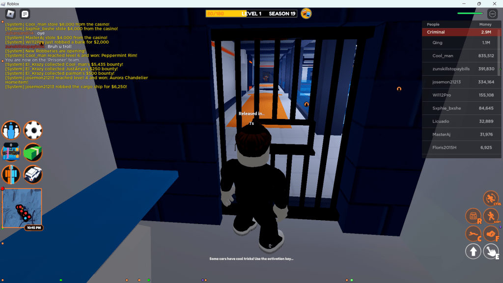 Now the prisoner is to get out of jail and rob places. (cant get to anywhere to rob so i cant show you robbing sadly) me in jail for the 100th time: